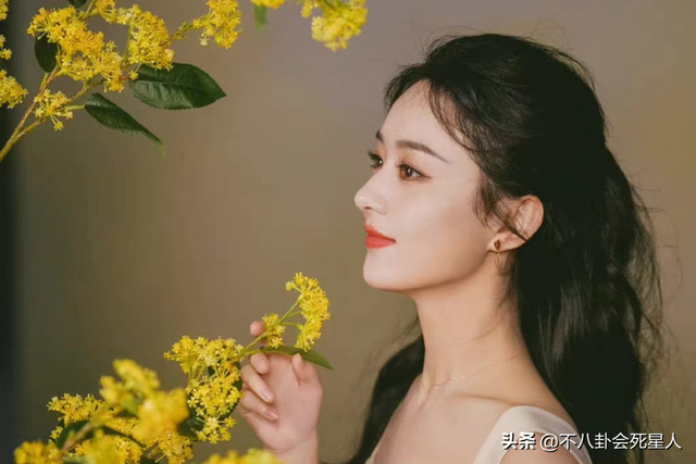 不仅如此,赵丽颖还站在桂花前,给人一种盈月圆满、丹桂花香的氛围感。